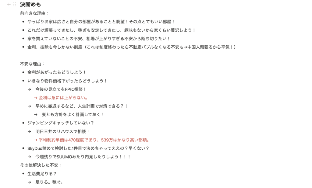 このときは今思うと結構軽い気持ちであったと思う。引き渡しも先立ったのもあるし、今の賃貸暮らしよりも支出が抑えそうという気もあった(後に、管理費修繕費等の維持費、リセールバリューの不安含めると疑問符がつくという気づきを得たが、当時は考えが及ばなかった)